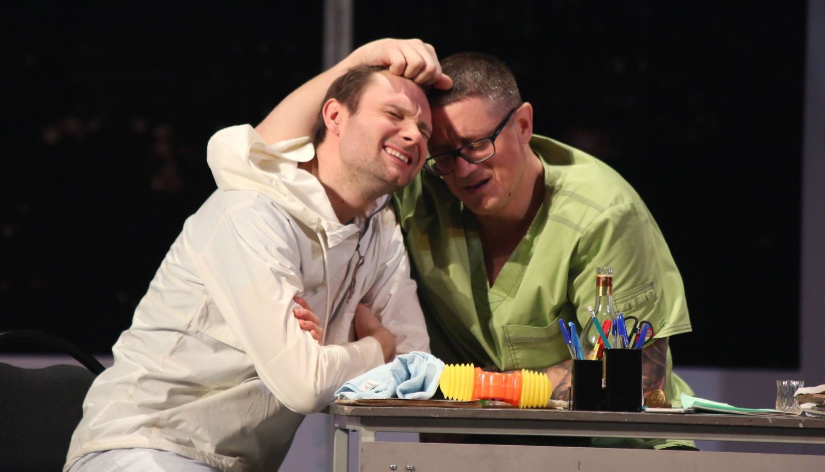 Это не комедия положений. Это комедия одного положения, в котором оказались герои пьесы. Вроде бы обычная ситуация: двое приходят к врачу со своими душевными проблемами. Только пациенты — не люди, а ангел с бесом.